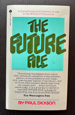 “The Future File” – Paul Dickson is a non-fiction author who was written on a wide range of topics, from electronic warfare to baseball terminology. In 1975 he published a book called “The Future File”, which is a guide to futurism.