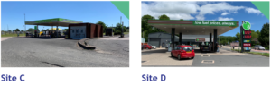 Site C is located near a hotel and bar on a major town ring road. It has five pumps and 17 nozzles offering nine simultaneous fueling positions. There’s no premium fuel, store brand, food service or coffee. The site is in need of upgrade and could accommodate a larger footprint store to provide additional services.