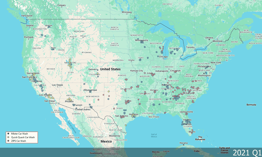 Noticeably, no sites have been opened in the locality of Houston – the home market of Mister Car Wash, suggesting Zips recognized the strength of the competitor may pose challenges to entry.