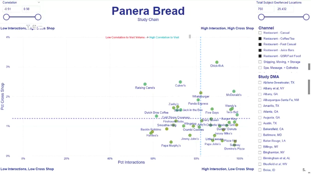 Location intelligence can help brands spot and overcome those barriers. Cross-shop data, for example, doesn’t just show that Panera fans also visit Raising Canes and Culvers, it can reveal unexpected patterns, like a strong overlap with a nearby gym. That insight might inspire post-workout messaging (“Strong workout. Treat yourself.”) or even a local partnership that fits seamlessly into your customer’s lifestyle.