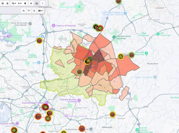 One of our clients – a three-unit salad concept – learned this firsthand. They were eager to expand into Charlotte and had their eyes on uptown. But, by mapping the trade areas of Sweetgreen and Chopt, they discovered the urban core was overserved, while the suburbs offered a better fit with no direct competition.
