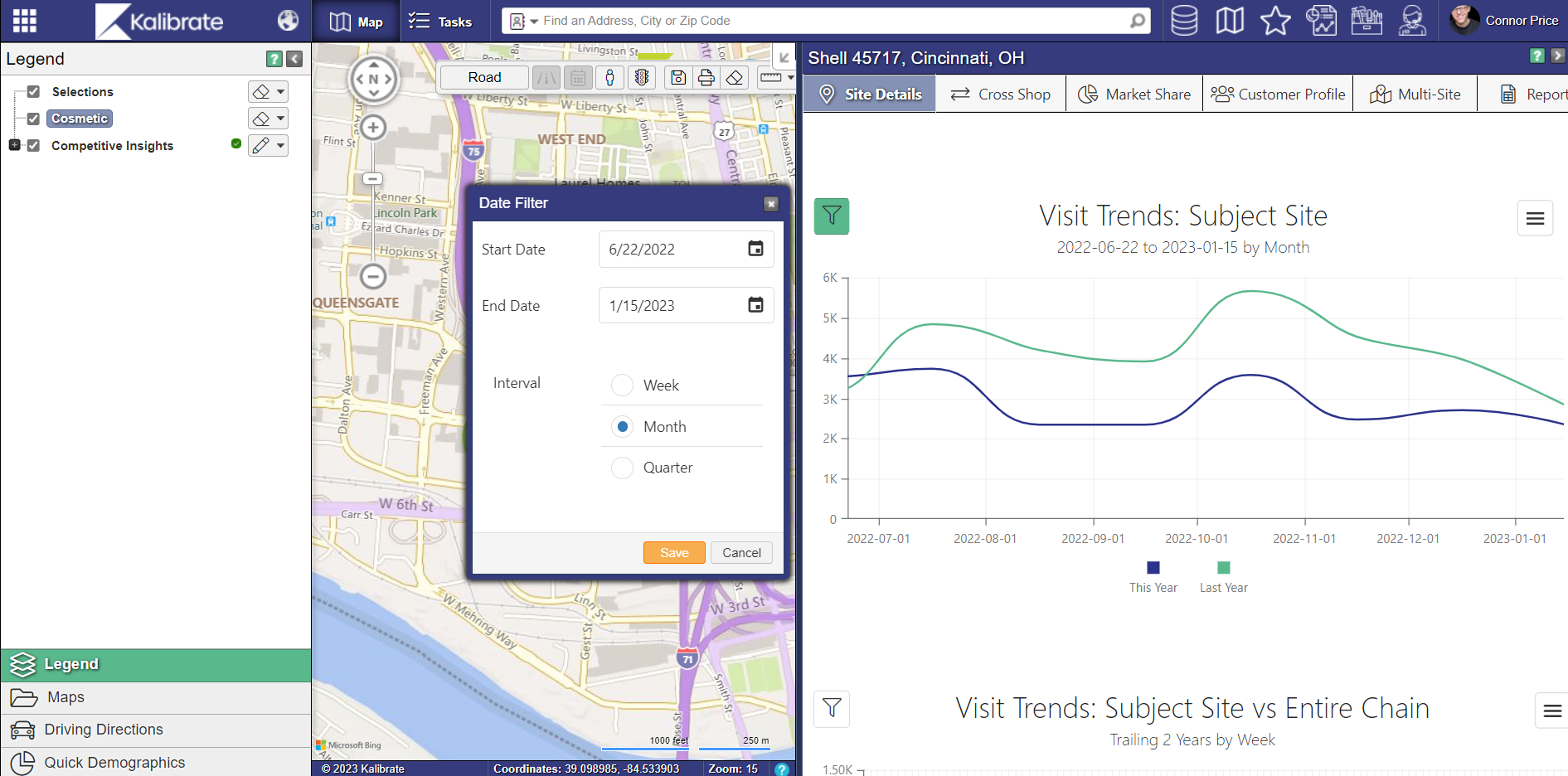 Navigate to the Competitive Insights dashboards and select your own date range. Users can view their specified range in weekly, monthly, quarterly, or annual intervals.