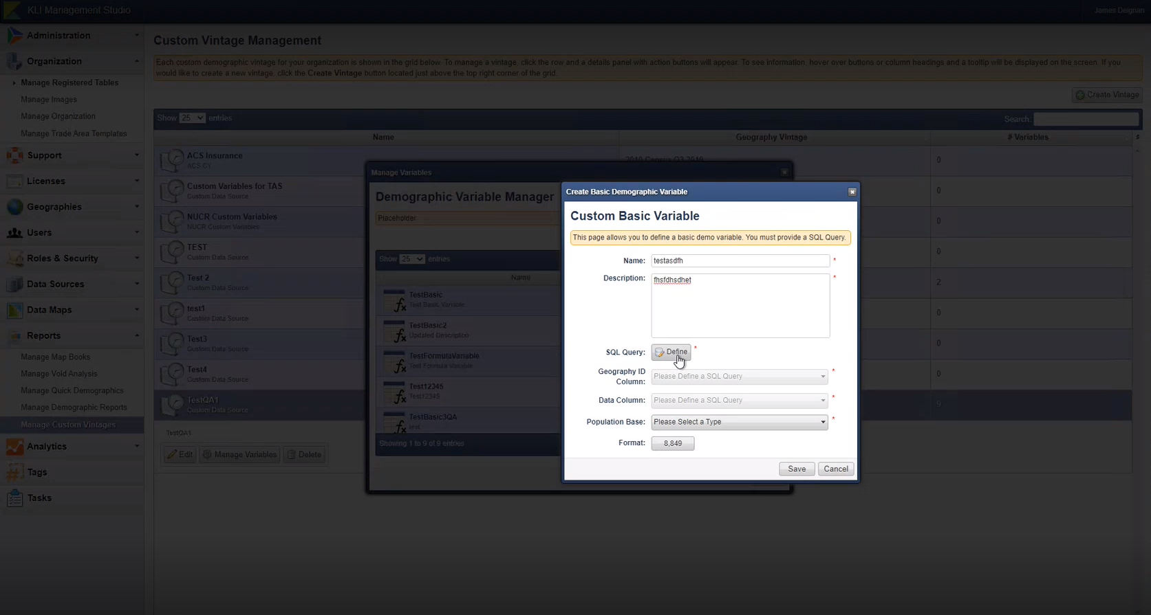 The demographic data dictionary allows you to create custom variables based on given raw data. To be able to view these custom variables on the KLI Online map, follow these steps.